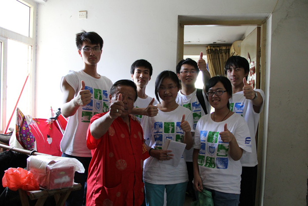 来到周斌爷爷家楼下时,发现他已经早早地在楼下等着同学们了。周斌,2008年被评为第七届“南京市好市民”,街道领导给了他“不是党员,胜似党员”的评价。采访中,同学们了解到周老爷爷每天4点半起床带着社区低保户为社区做志愿劳动,为维护街道秩序,他每天晚上举着自费大喇叭,义务在社区巡逻,这一喊就是20年,喇叭都换了100多个。“人多手杂,小心皮夹”、“夏天到,蚊子叫,小偷都来凑热闹;关好门,锁好窗,防好小偷睡得香”等顺口溜让同学们感受到周爷爷的活力与热心。当同学们问到周爷爷对于习近平主席提出的中国梦的看法时,他的回答是“我没有什么高要求,我把一切都交给党,我的梦想就是趁活着多为人们做点事,有一天能感动中国!”同学们都被眼前这活泼热情的老顽童志愿者感动了。