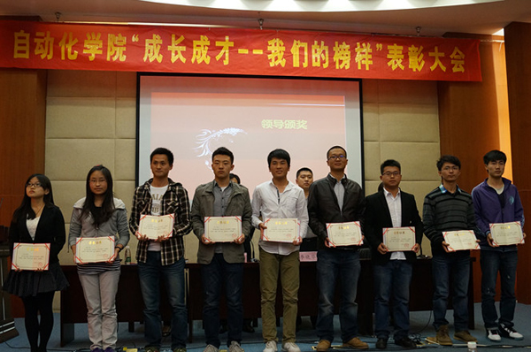 为深入学习贯彻党的十八大精神,自动化学院通过培育选树学生先进典型,在全院范围开展了“成长成才——我们的榜样”主题教育,评选出了一批在学习、科研、社会工作等方面表现突出、成绩显著,充分发挥先锋模范作用的集体和个人。2013年4月18日下午,自动化学院 “我们的榜样”表彰大会在仙林校区行政楼一楼报告厅隆重举行。百家乐app团委副书记李晓华老师、自动化学院党委副书记黄建龙老师、自动化学院党委组织干事陈素兰老师及自动化学院各年级辅导员出席了本次大会。本次大会由自动化学院分团委书记叶晓勤老师主持。