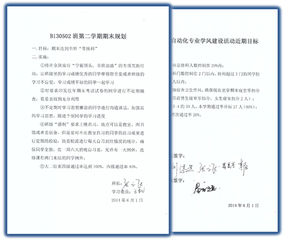 然后,秦老师公示了前段时间各个班针对期末考试所制定的目标计划书,希望各班级能够切实高效地执行《目标计划书力争本学期期末考试取得良好成绩。之后,辅导员结合自身以往的学习经历与大家分享了一些学习方法上的建议,要求同学们规划并严格执行针对课本的复习计划,有的放矢、各个击破,真正营造“学霸领头,全班加油”的良好复习氛围。