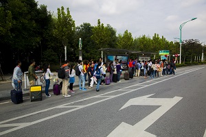 从上午9点半开始,爱心社成员就出现了南邮门口的公交车站。同学们穿上红马甲后就积极开展工作,无论是举牌引导乘客排队,还是主动帮有需要的乘客提行李,他们都不怕累、不怕苦,体现了百家乐app学子吃苦耐劳的精神。在红马甲们的热情帮助下,乘客们有序地上车,即使是人最多的97路公交,秩序也丝毫不乱。红马甲们维持公交站秩序,用微笑传递乘车文明,用服务散播国庆快乐,一个手势,一个问候,一个提醒,都彰显了一个爱与爱交织的日子,安全你我他,幸福回到家。长队,人群,行李,回家的节奏,但更惹目的是那一个个红色的背影,默默无闻,敢于奉献,不怕行李的笨重,只怕同学们等不到车的焦急;不怕骄阳的赤烈,只怕同学们错过时间的愁苦。