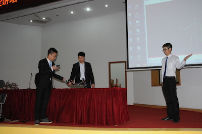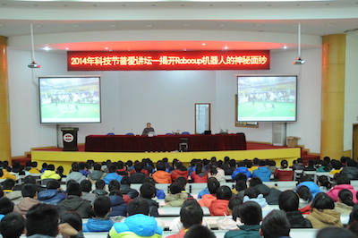 下午两点,伴随着百家乐app宣传片的播放,2014年新海高级中学科技节南邮专场拉开帷幕。首先,由丁静书记介绍了我校的人才培养、学科建设等发展近况,并感谢新海高级中学为我校输送的优秀人才,他们进入南邮后,学习勤奋,刻苦钻研,素质发展全面。随后,梁志伟副教授以“揭开RoboCup机器人的神秘面纱”为题,开始了专题讲座,讲座中提到了我校Apollo团队多次获得世界冠军、中国冠军的骄人成绩并为中学生介绍了RoboCup机器人大赛的组别和规则。最后,由基地4名学生为大家演示了机器狗、TurtleBot以及在我校第十六届创新杯中刚刚夺得一等奖的“服务残疾人的Kinect体感遥控机器”。