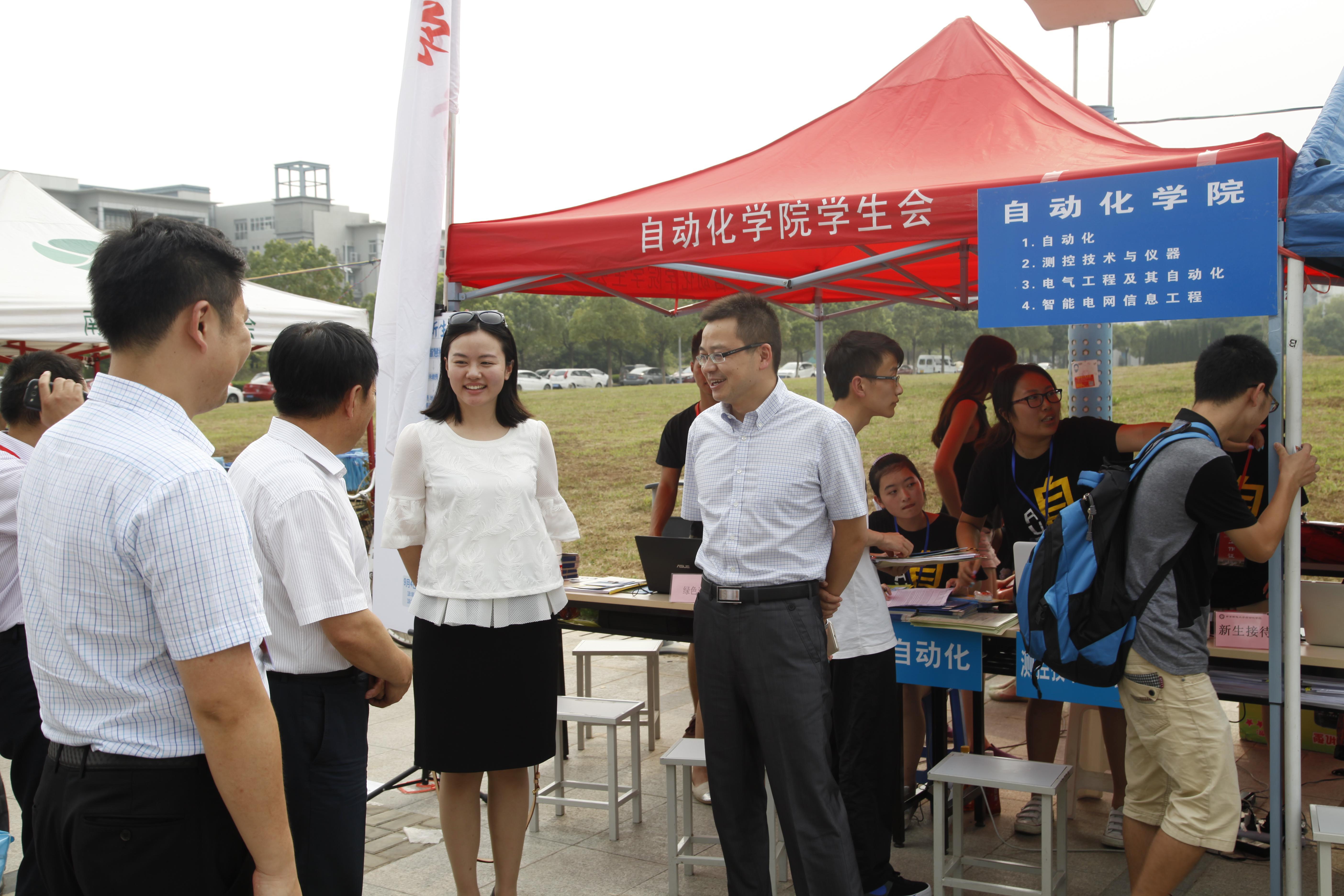 自动化学院团委副书记范结兵、分团委副书记汪颖、辅导员老师朱荣臻、秦昌建、吴婧、马骋老师等也到了现场组织迎新工作,耐心细致地解答新生及其家长的问题。当工作人员对绿色通道的办理流程提出疑问时,汪颖老师经过多次咨询,细致耐心地进行了解答。
