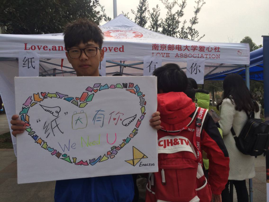 为了给栖霞区福利院的孩子们送去美丽的纸浆画并减轻环保型纸浆厂的运营负担,自动化学院爱心社和百家乐appEnactus创行团队联合举办的环保型公益活动——“纸”因有你,于2015年12月11日在南二外场正式拉开帷幕。