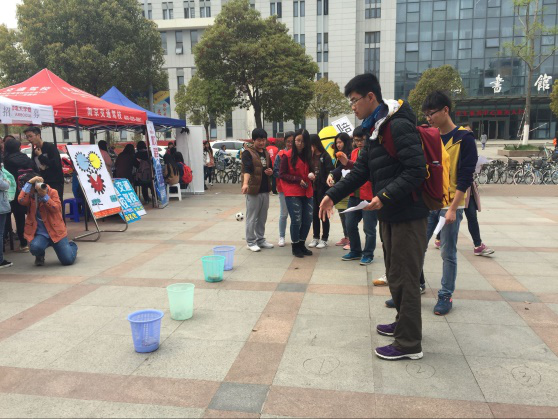 当天,两名爱心社成员身着人偶服,以可爱活泼的形象吸引过往同学们的注意。为防止报名人数过多而产生拥挤,爱心社准备了三个帐篷。其中的两个帐篷内设计了两个以自闭症常识为基础的游戏,让参与者体会到不一样的知识竞答;另一个挂着骑行地图的帐篷则是参加“仙林七校联合公益骑行挑战赛”的报名点。活动现场,工作人员详细讲解游戏规则及技巧,帮助参与者顺利完成游戏。不少参加公益骑行挑战赛的同学选择与同学、室友一起参加,共同见证彼此完成挑战。热闹的气氛吸引了外院外教们的驻足,简单的沟通和了解后,他们表示愿意传递活动的主旨——关爱自闭症儿童,并组成了“外教队”,这一心灵共鸣的选择给整个活动添加了新的元素。活动过半,南师爱心社的代表来到现场对值班人员进行了简单的采访。下午5点,伴随着夕阳的余晖,公益骑行挑战赛线下报名及宣传活动圆满落幕。