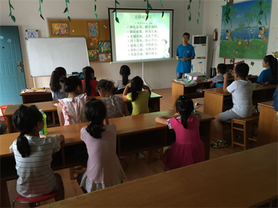 2016年7月10日,自动化学院暑期社会实践暨湖山社区“向日葵•氧吧”夏令营第五天的活动顺利进行。为了让孩子们健康成长,树立良好的人生价值观,自动化学院实践团成员们为湖山社区儿童上了一堂以“成才成长”为主题的励志教育课程。