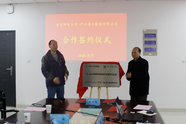 工程实验室主任岳东教授就实验室建设工作的进展从建设目标、系统规划、研究方向、研究团队、论文成果与专利、软硬件平台系统研发等多个方面向到会专家作了详细汇报,并介绍了后续工程实验室的工作重点。岳东教授与国电南京自动化股份有限公司唐平总经理、中兴通讯股份有限公司周宇翔总工签署了工程实验室共建协议,颜晓红副校长与中兴通讯股份有限公司周宇翔总工为“CLAA物联网高校共建实验室”揭牌。与会人员一起参观了智能微电网实验室,并就微电网系统的平台建设进行了沟通交流。