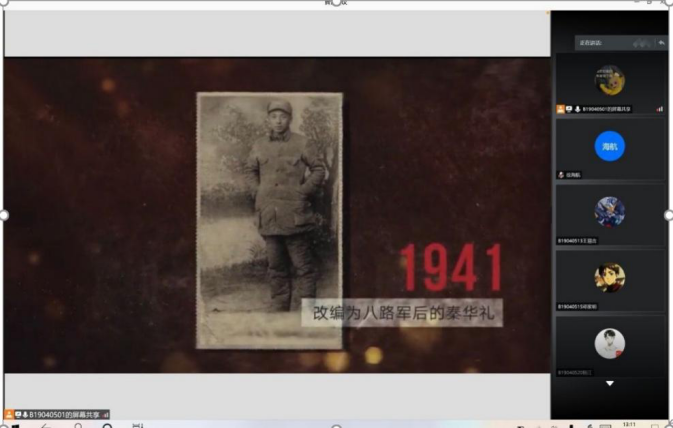 2019级测控专业的三个支部通过观看视频,走入秦老的一生。秦老曾在《开学第一课》上寄语青年学子“百折不挠学本领,坚定不移跟党走。”秦老作为一名老红军、老党员,他始终坚持着“舍小家,为大家”的理念,一世清白,兢兢业业,将自身的发展融入国家建设之中。秦老对青年学生进行的“艰苦奋斗、革命传统”教育,为青年学生们打下了为祖国富强发展而勤奋学习科学文化知识的思想基础,为祖国建设培养了一大批优秀人才。秦华礼老前辈用自己的事迹告诉了每一个南邮学子,什么才是对祖国的热爱。