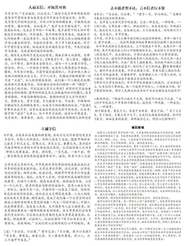 为增强学生的诚信意识和责任意识,提高资助育人成效,激励广大在校学生奋发拼搏,成长成才,手机百家乐 于5月17日——5月31日进行了“诚立德,勤修身,柚子信天下”主题征文活动,共收集到近百份征文作品。学生们结合自己的亲身经历,将诚信与母校培养教育联系在一起,既表达了对母校的热爱之情,又升华主题,引起广大学子的共鸣,在校园中扬起诚信之风。