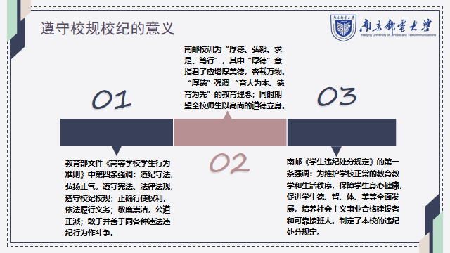 为帮助21级新生形成规则意识,自觉遵守大学生礼仪规范,养成良好的行为规范,9日下午学院2018级辅导员郭亚洲通过线上会议的形式,向21级新生进行校纪校规的宣讲。首先,郭老师从《高等学校学生行为准则》和《学生违纪处分规定》入手,结合百家乐app“厚德、弘毅、求是、笃行”的校训 ,向新生们阐述了形成良好行为规范的重要意义。接着结合本校具体案例、视频,对学生违纪处分规定进行了重点解读,警醒同学们要自觉抵制不良诱惑,坚定自己的立场和信念。