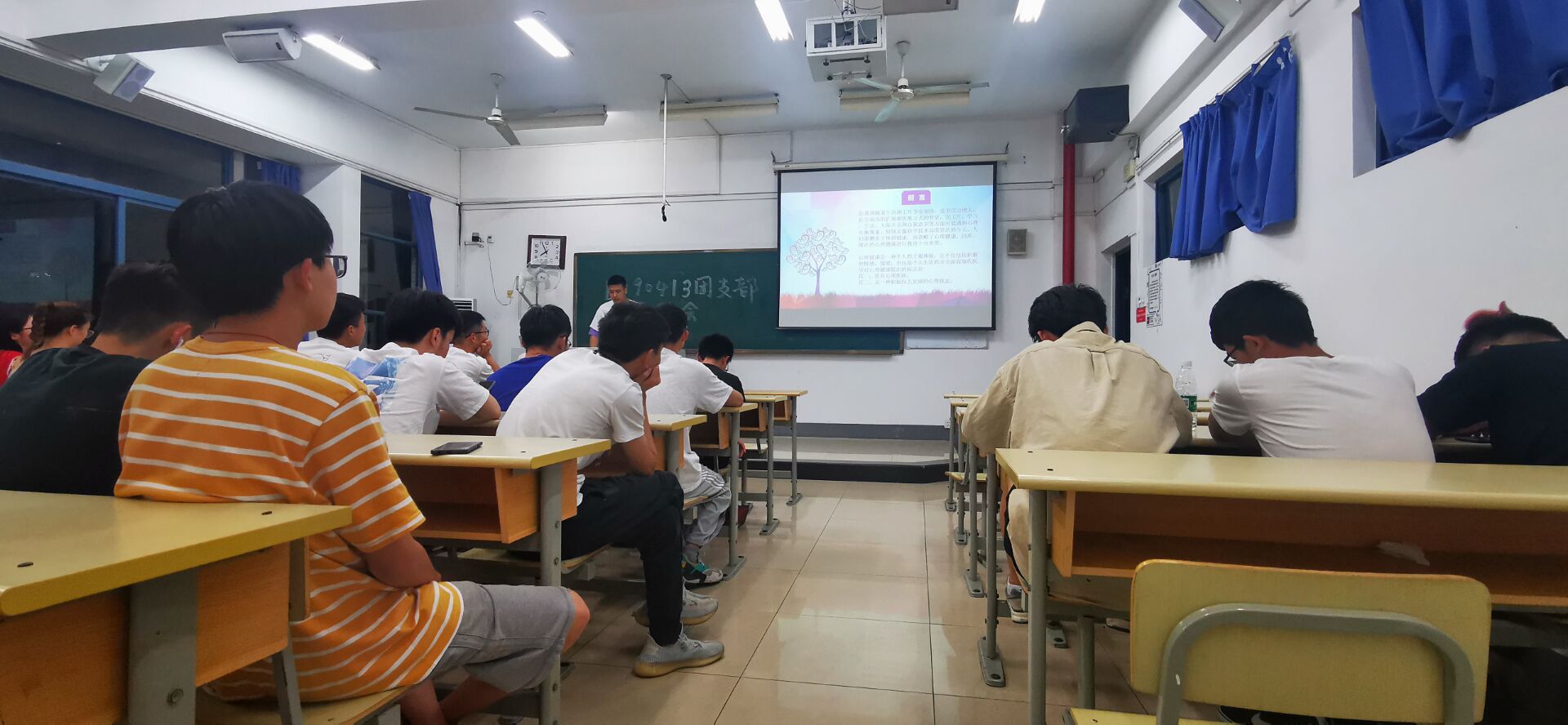 B190408班重视班级同学的心理健康,以典型心理危机事件分析,引导班级同学关注心理健康问题。班会上,心理委员通过匿名形式的“你问我答”小游戏,让同学们说出心中的焦虑和烦恼,在互相出谋划策的过程中,让同学们学会倾听,学会为他人排忧解难。游戏环节后,心理委员对大家提出的问题进行整理,归纳出大家在学习生活中常见的典型问题,让同学们交流思考,并提出自身认为切实有效的处理办法,大家积极思考,畅所欲言。