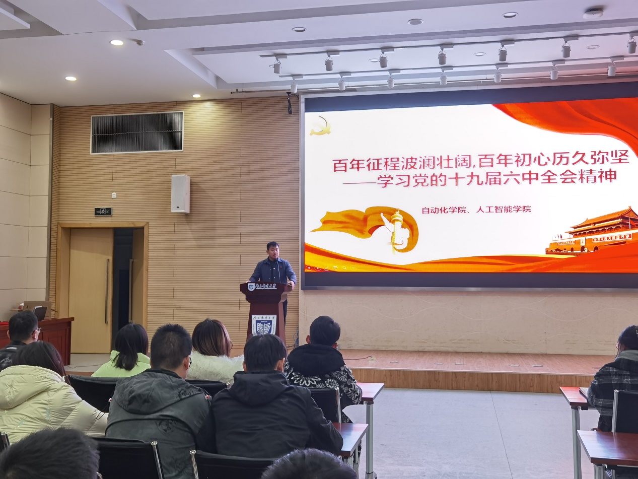 活动伊始,学院党委副书记孙委委作学习贯彻党的十九届六中全会精神专题党课。党的十九届六中全会审议通过了《中共中央关于党的百年奋斗重大成就和历史经验的决议》系统科学、全面客观地总结了建党一百年来的重大成就和历史经验,意义重大、影响深远,高度凝练了中国共产党团结带领全国各族人民从站起来到富起来,再到强起来的光辉历程,彰显了中国共产党百年征程波澜壮阔、百年初心历久弥坚。全体党员要积极响应党中央号召,更加紧密地团结在以习近平同志为核心的党中央周围,全面贯彻习近平新时代中国特色社会主义思想,大力弘扬伟大建党精神,勿忘昨天的苦难辉煌,无愧今天的使命担当,不负明天的伟大梦想,以史为鉴、开创未来,埋头苦干、勇毅前行,为实现第二个百年奋斗目标、实现中华民族伟大复兴的中国梦而不懈奋斗。