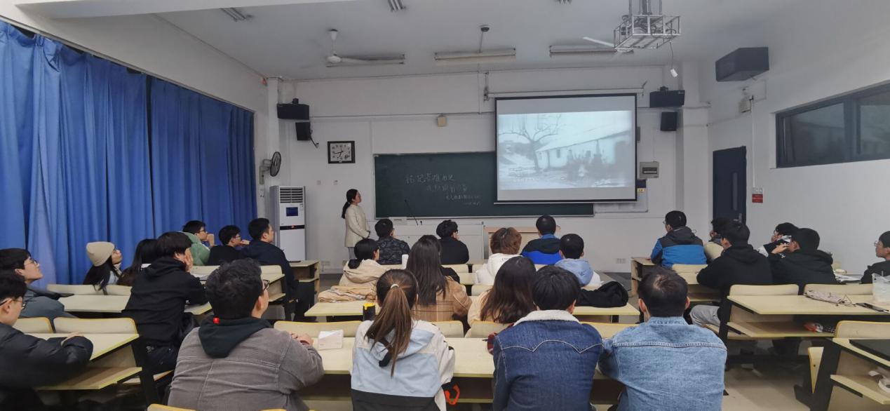 本次活动主要分为讲解南京大屠杀历史背景、揭露日本侵略者的罪恶行径、思考国家公祭日的设立意义、告慰逝者以及祈愿和平五个部分。主持人介绍了国家公祭日的设立背景,并通过图片及文字描述的形式带领大家共同回顾八十四年前的沉痛历史,通过亲历者夏淑琴老人的话语以及珍贵的历史影像揭开日本侵略者旷世未闻的兽行暴虐。在观看影像资料过程中,同学们神情凝重,专注至极。一贞贞黑白画面诉说着惨痛的事实,一句句沉重的台词背后隐藏着无尽的哀思。