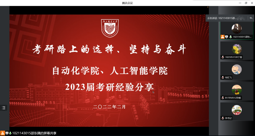 为拓宽手机百家乐 2023届学子对考研信息获取,引导学生明确考研目标,增强自我规划能力,营造积极向上的良好学习氛围,手机百家乐 于2月18日在线上举行了考研经验分享会。手机百家乐 党委副书记、副院长孙委委老师莅临指导,手机百家乐 2021届毕业生丁雪(现硕士研究生就读于百家乐app)、2021届毕业生孙杨(现硕士研究生就读于东南大学)、2021届毕业生包红飞(现硕士研究生就读于北京邮电大学)向2023届考研学子分享了宝贵经验。会议由2019级辅导员邵东隅老师主持。