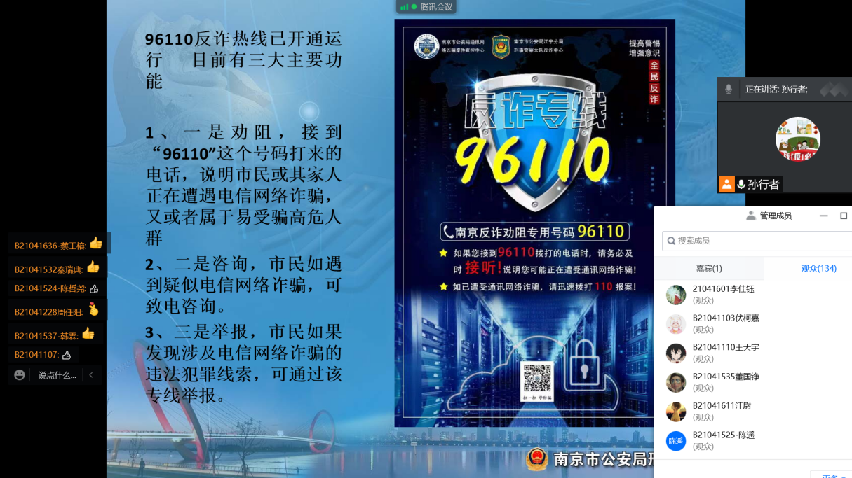 5月12日上午,手机百家乐 积极响应学校法律教育活动,组织学生参加“法治为青春护航,守护学子共成长”的线上宣讲。通过“《反有组织犯罪法》知多少?检察官带你划重点”、“擦亮眼睛,向”"电诈”说不”、“浅谈长江入侵物种识别与非法捕捞危害”三个板块的重点学习,同学们纷纷表示受益匪浅,既丰富了法律知识,同时也增强了法治观念。