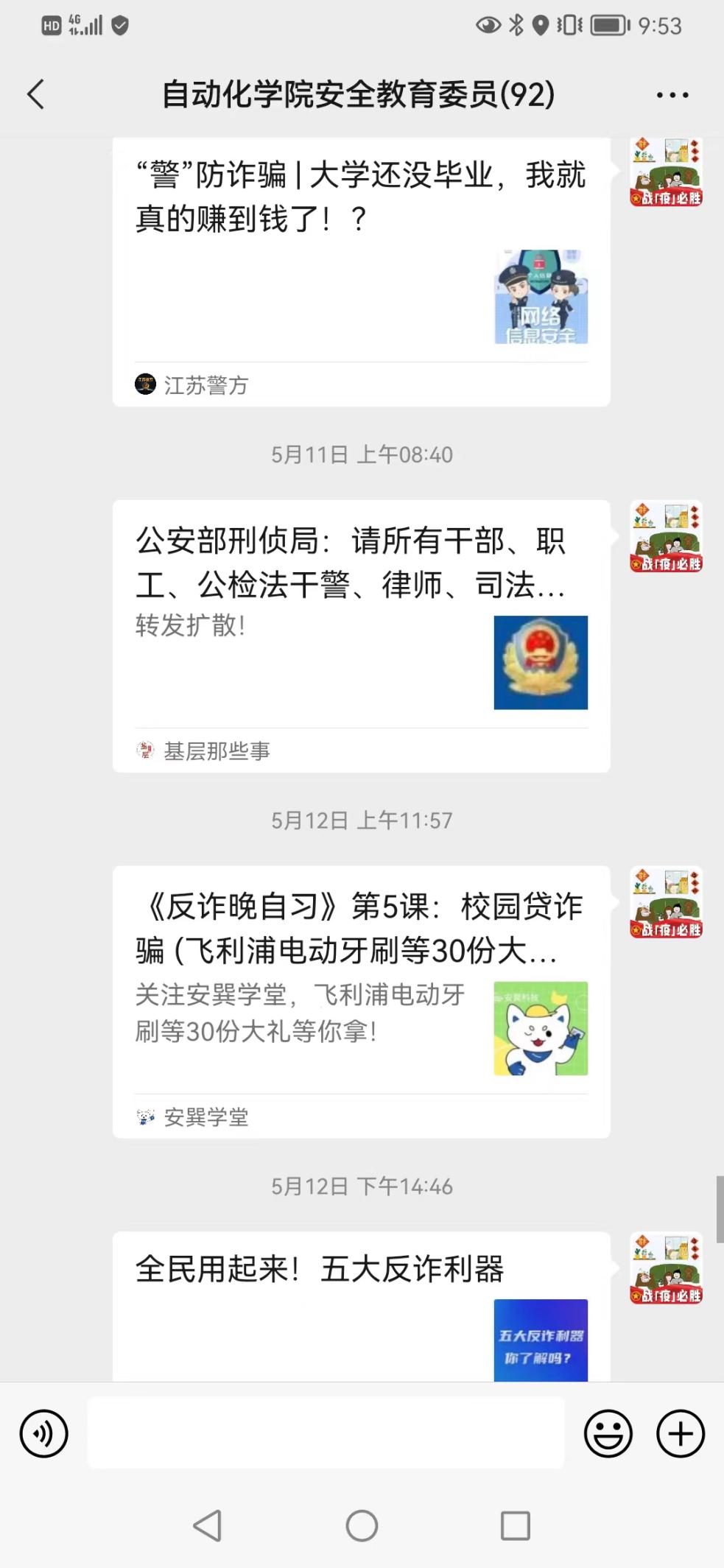 为进一步增强法治宣传教育效果,不断加强队伍建设,手机百家乐 成立了安全教育委员工作群,分享警示案件,交流工作心得,及时传递工作要求,为同学们健康成长保驾护航。