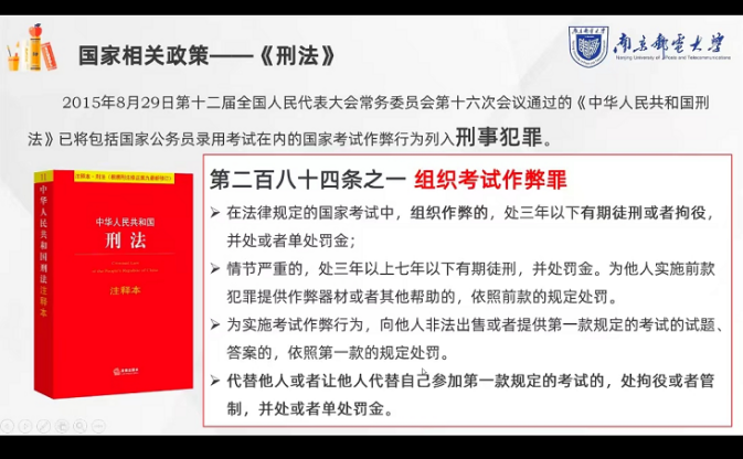 罗老师以两个特殊案例强调防诈骗的重要性,告诫同学们时刻提防电信诈骗,并结合学院发的防诈骗蓝色贴纸,每次大额转账前一一对照,是否有诈骗可能性。“君子义以为质,礼以行之,孙以出之,信以成之。”最后罗老师向同学们强调诚信的重要性,正值考试之际,希望同学们都能诚信考试,做到不想作弊、不愿作弊、不敢作弊。同时组织同学们收看诚信应考宣传动画并签订诚信考试承诺书,提醒学生《刑法修正案(九)》新增了“替考罪”,替考入刑进入实质性阶段。勉励全体同学要以诚信为基础,筑牢法治国家思想基础;以法律为准绳,稳固国家的长治久安。