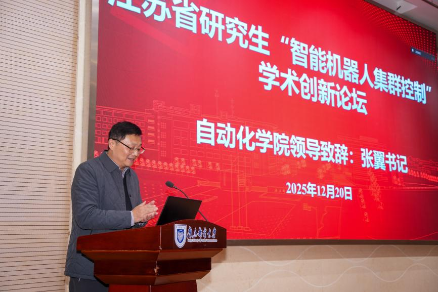 2025年12月20日,江苏省研究生“智能机器人集群控制”学术创新论坛在我校圆满召开。本次论坛由江苏省工学2类研究生教育指导委员会主办,百家乐app自动化学院、江苏省物联网智能机器人工程研究中心、具身智能与装备控制江苏省高校重点实验室等单位共同承办。来自全国高校及科研机构的专家学者与100余位研究生代表参加了此次论坛活动。